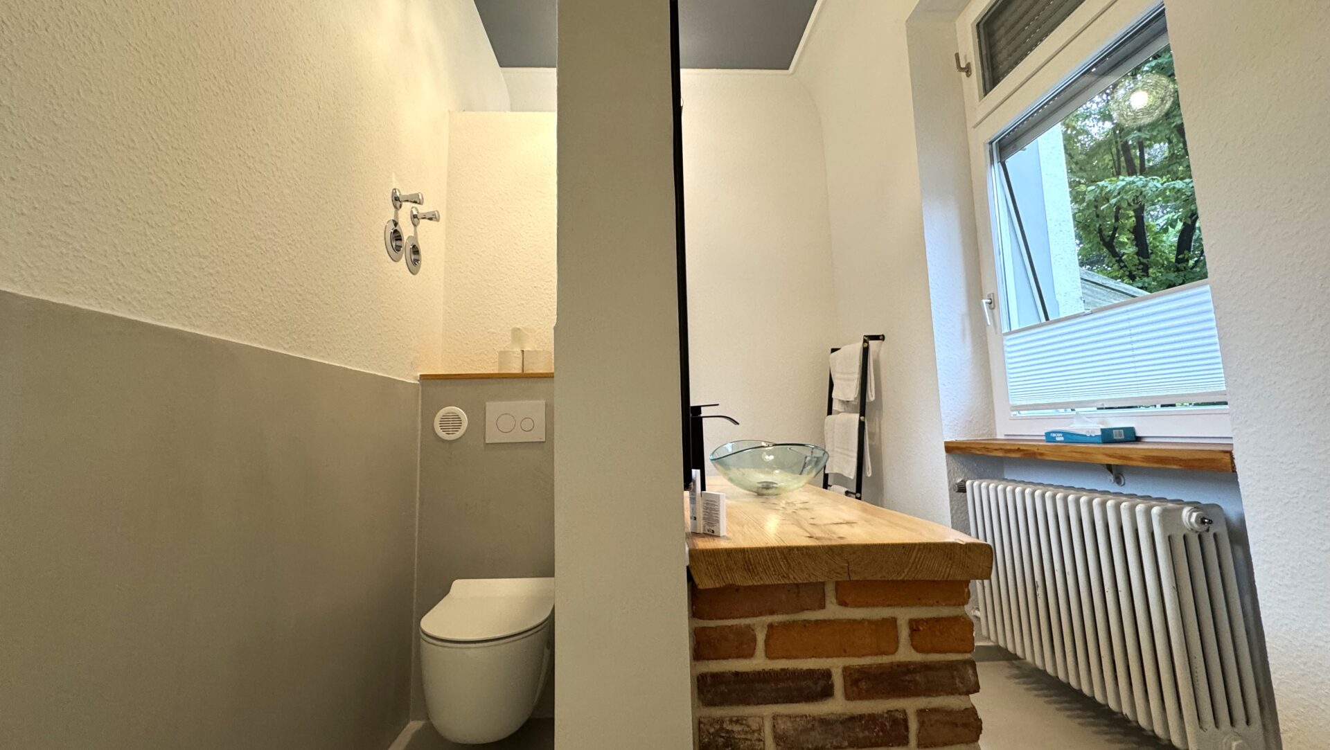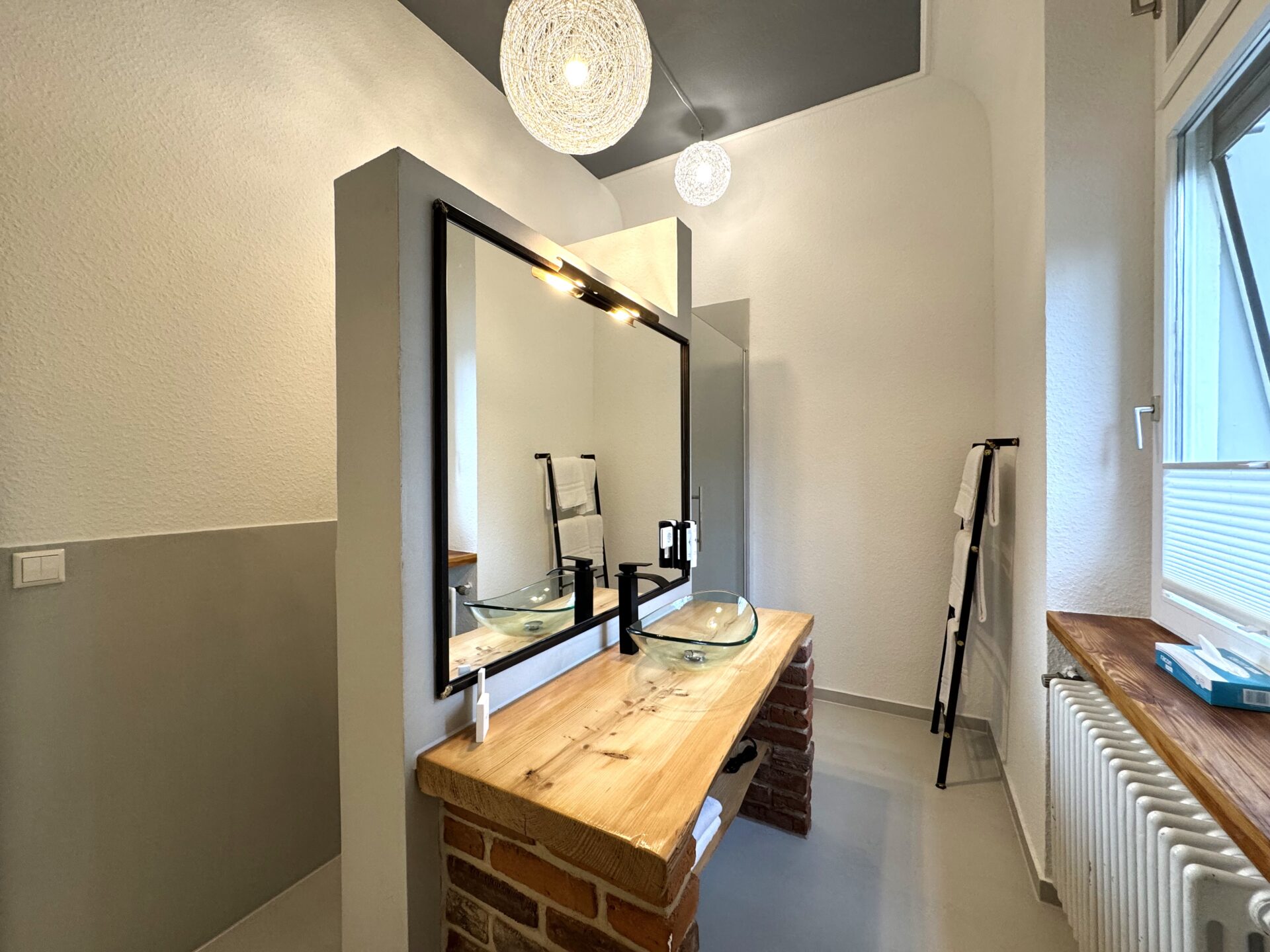 Willkommen in unserer einzigartigen Altbauwohnung, die auf 55 Quadratmetern eine außergewöhnliche Unterkunft bietet. Hier stehen Ihnen zwei separate Schlafzimmer mit komfortablen Doppelbetten zur Verfügung. Dazu kommt ein voll ausgestattete Küche und ein Bad mit Regendusche ausgestattet.